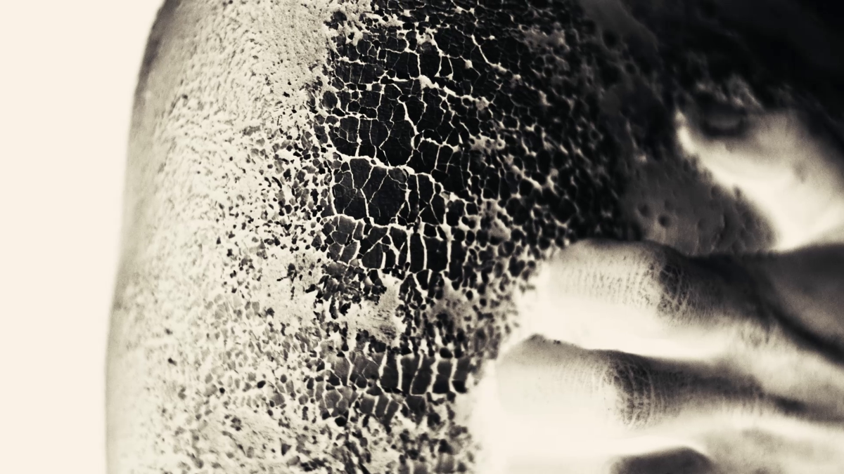 Die Videoinstallation erkundet in atmosphärischen Schwarzweißbildern die Haut des eigenen Körpers, der wir nicht entfliehen können.